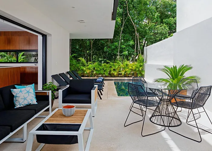Located within 7 km of Xavage Park by Xcaret, the 4-bedroom Lux Retreat In Heart Of Nature - Casa Senderos Villa offers a terrace with views of the pool. Featuring bicycle and car rentals, the accommodation invites guests to visit Punta Venado, situated 16 km away.
